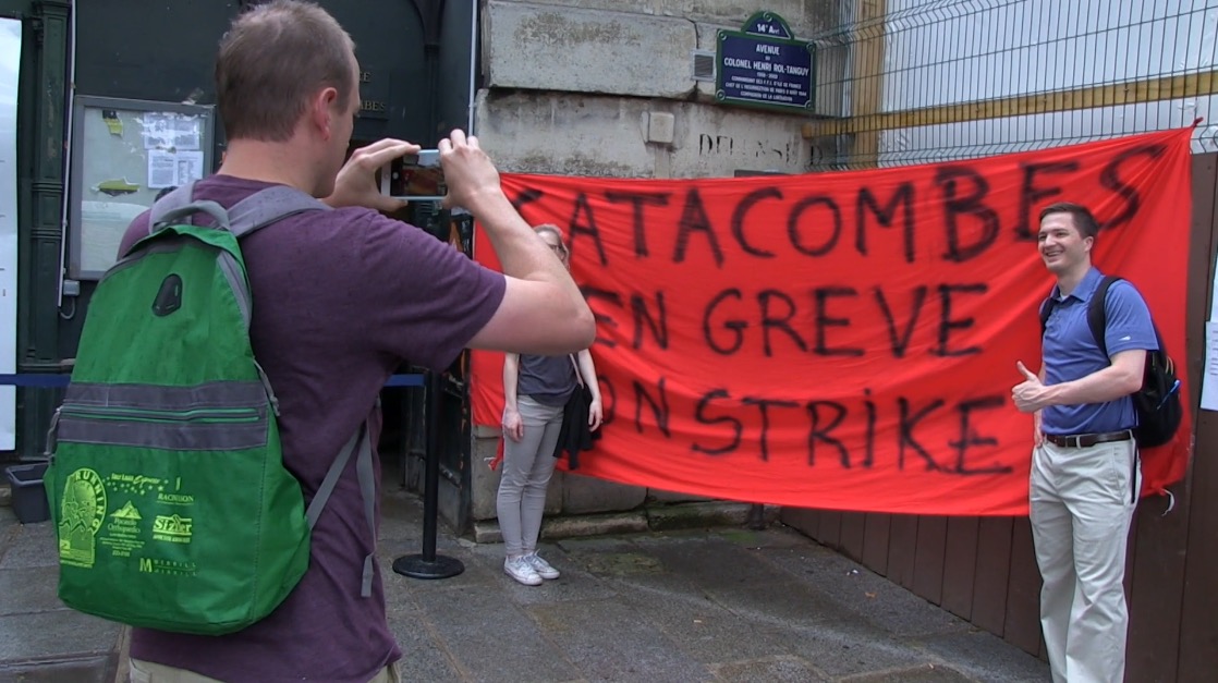 In the « social movement » of the spring of 2018, the Catacombes step out of the undergrounds and take the streets to organise. Meanwhile, tourists keep coming and the management continue to sell tickets online. We wanted to show how a strike is done; how it is maintained from a day to day and how it evolves over time. To obtain better working conditions, the struggle is to know: until when? for how long should one go on?