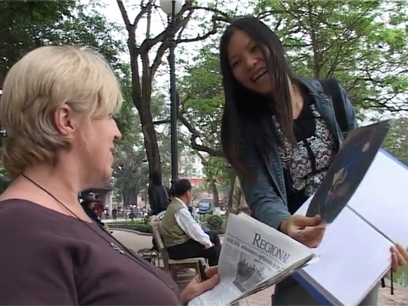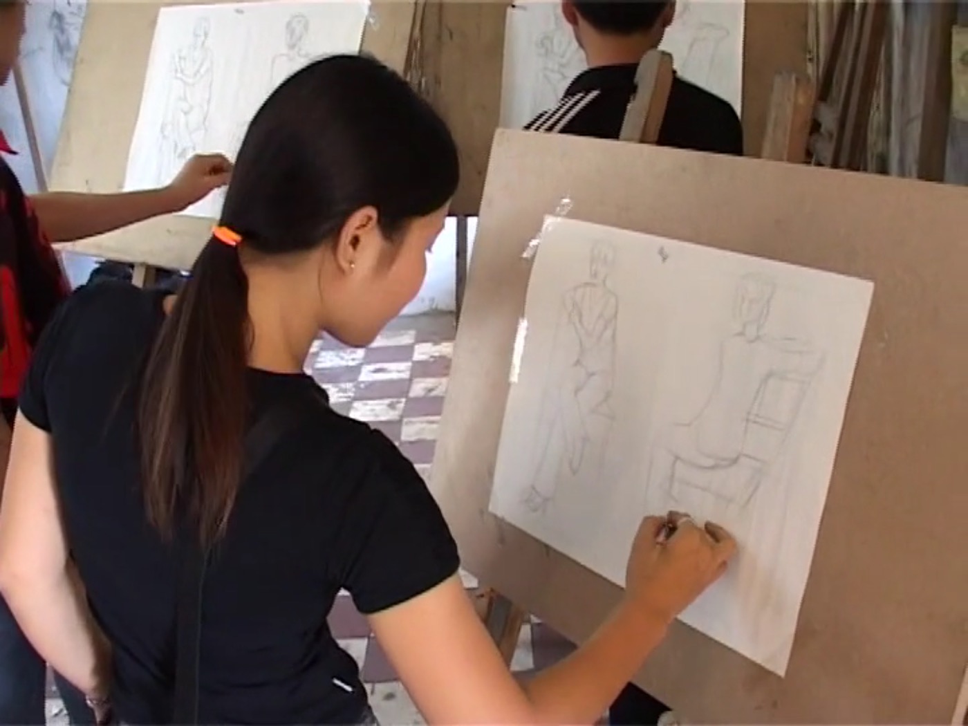Zell paints the portrait of her friend, a painting student at the Fine Arts School in Hanoï. Her mother is a poor worker in a brickyard and her situation inspires the work of her daughter, who sells her paintings to the many passing tourists. This new trade is barely tolerated.