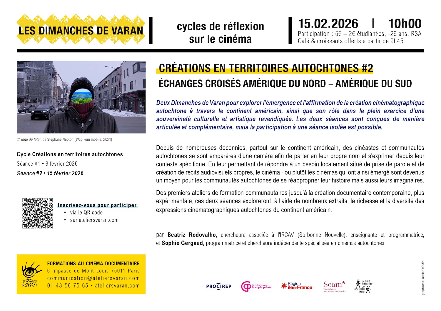 Deux Dimanches de Varan pour explorer l’émergence et l’affirmation de la création cinématographique autochtone à travers le continent américain, ainsi que son rôle dans le plein exercice d’une souveraineté culturelle et artistique revendiquée. Les deux séances sont conçues de manière articulée et complémentaire, mais la participation à une séance isolée est possible.