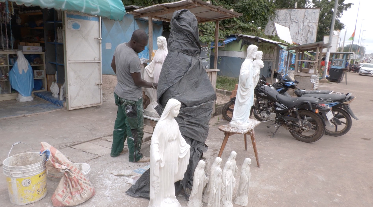 Jeune sculpteur autodidacte, Aké met en pratique ses études en philosophie esthétique à travers ses œuvres.