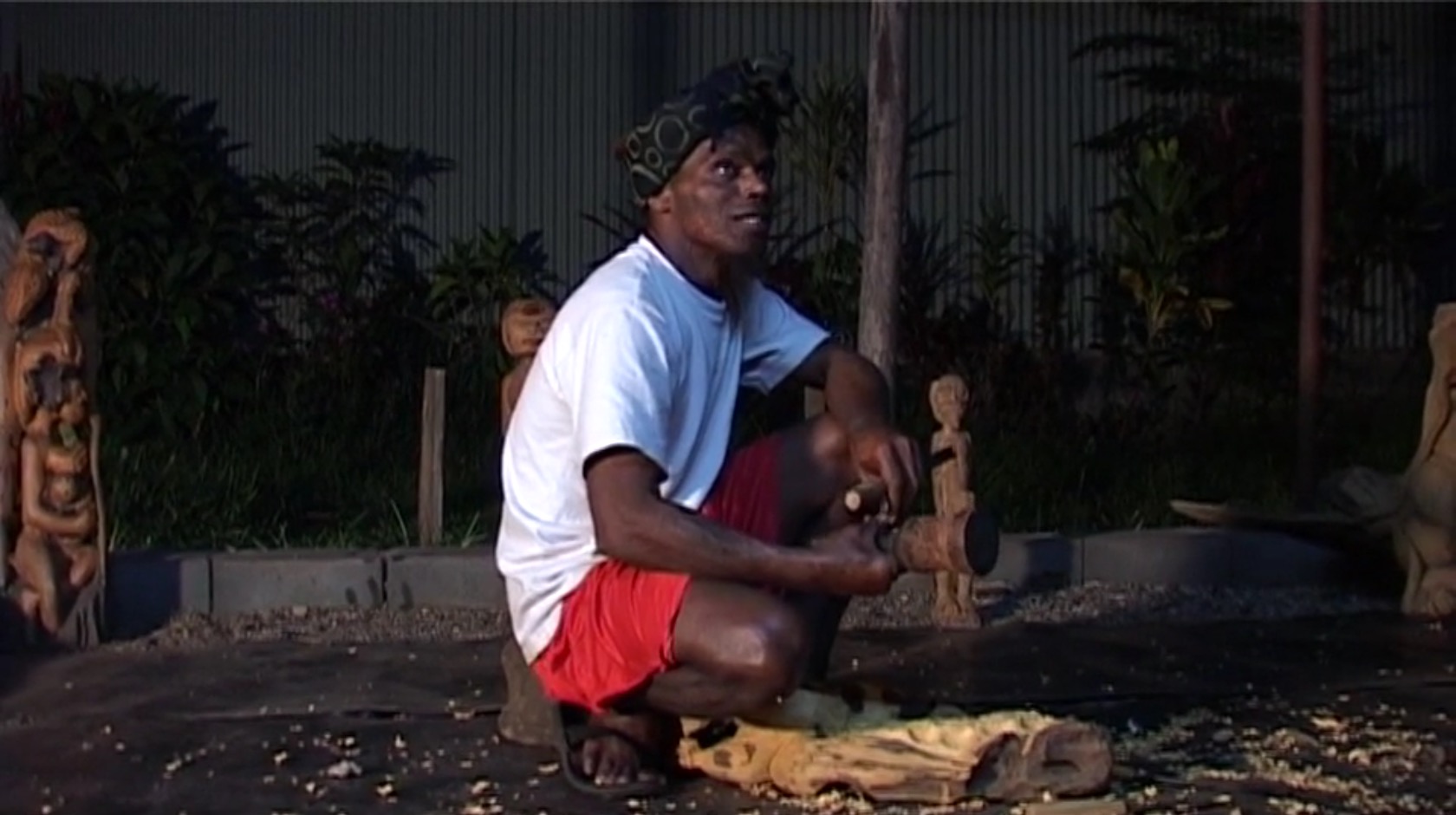 De la plage où le bois vient s’échouer à son atelier nocturne, Ceû, sculpteur de la tribu de Tieti à Poindimié nous révèle la dimension sacrée du bois.