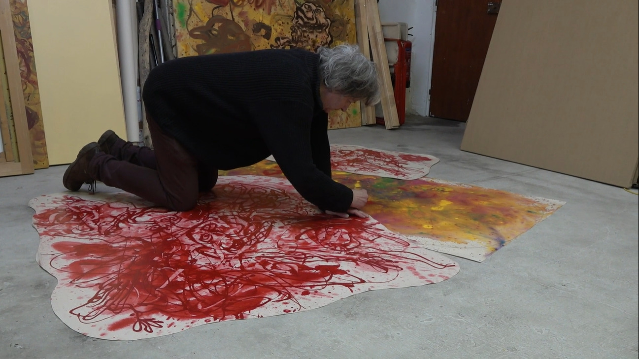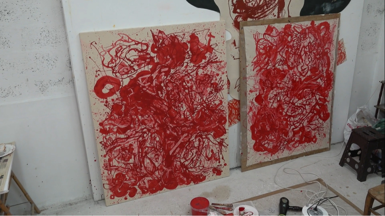 Luc, 62 ans, originaire de Cahors, est un artiste peintre avec atelier à Montreuil (93), un espace qu’il va devoir quitter. Solitaire, cet homme, qui se définit comme peintre gestuel nous ouvre à l’automne 2021 son lieu de travail où l’énergie et la couleur rouge dominent alors.